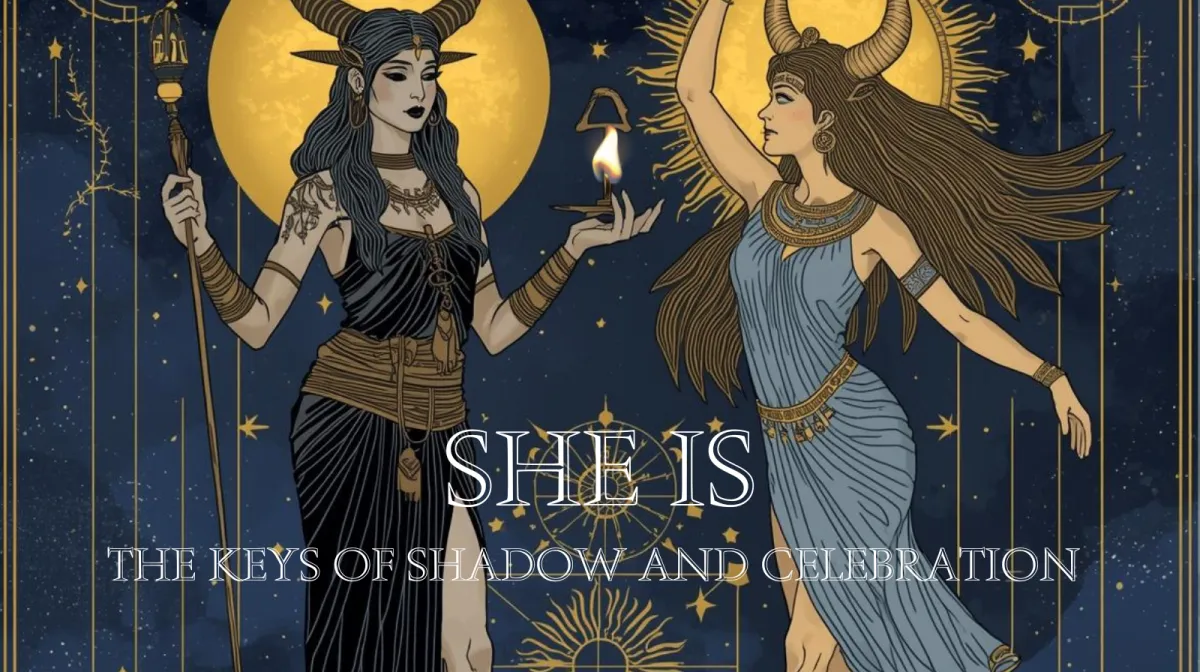 This transmission, SHE IS — The Keys of Shadow & Celebration, where she embodies the wisdom of Hathor, is the consolidation of everything she has walked, learned, healed, and embodied over the last twenty years.